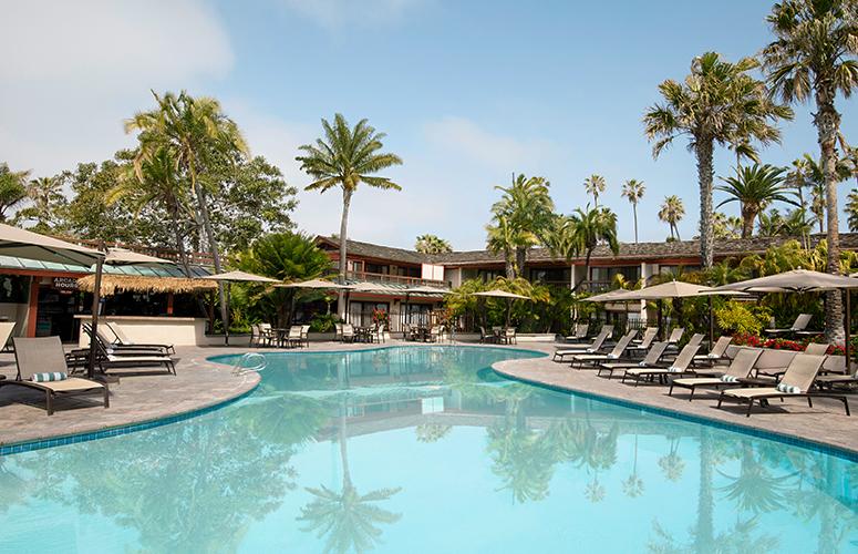 This waterfront resort offers comfortable accommodations, tropical landscaping, a full-service spa, and a bayside setting in San Diego’s Pacific Beach.